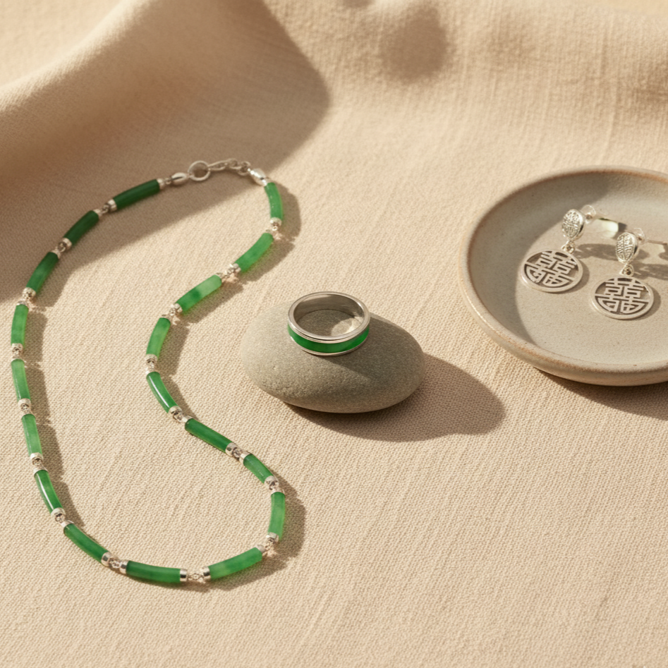 At Jade Hampton, we use high-quality jade, premium 0.925 silver and certified gemstones. Our family has been in the jade and silver trade for more than 40 years, hand-selecting high quality pieces from across Asia and Australia. Most of our materials come from vintage stock, meaning that they are higher-quality than most modern brands.